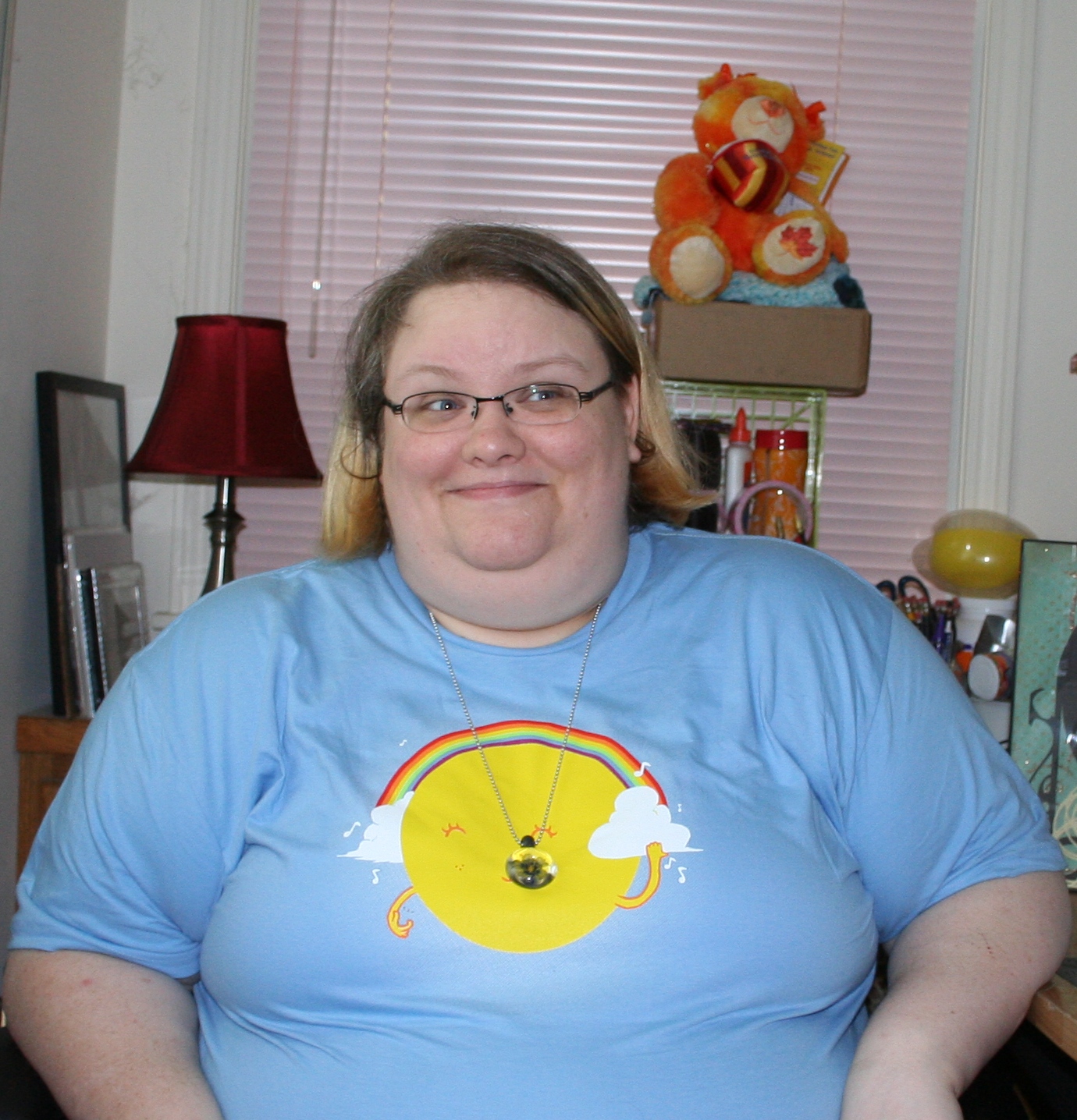 I love this shirt because it combines three of my favorite things: the sun, rainbows, and music! I feel quite cheerful wearing it. I am also wearing a necklace made by my brother, which has a gorgeous yellow and blue flower in the pendant. He gave it to me for my birthday this year.