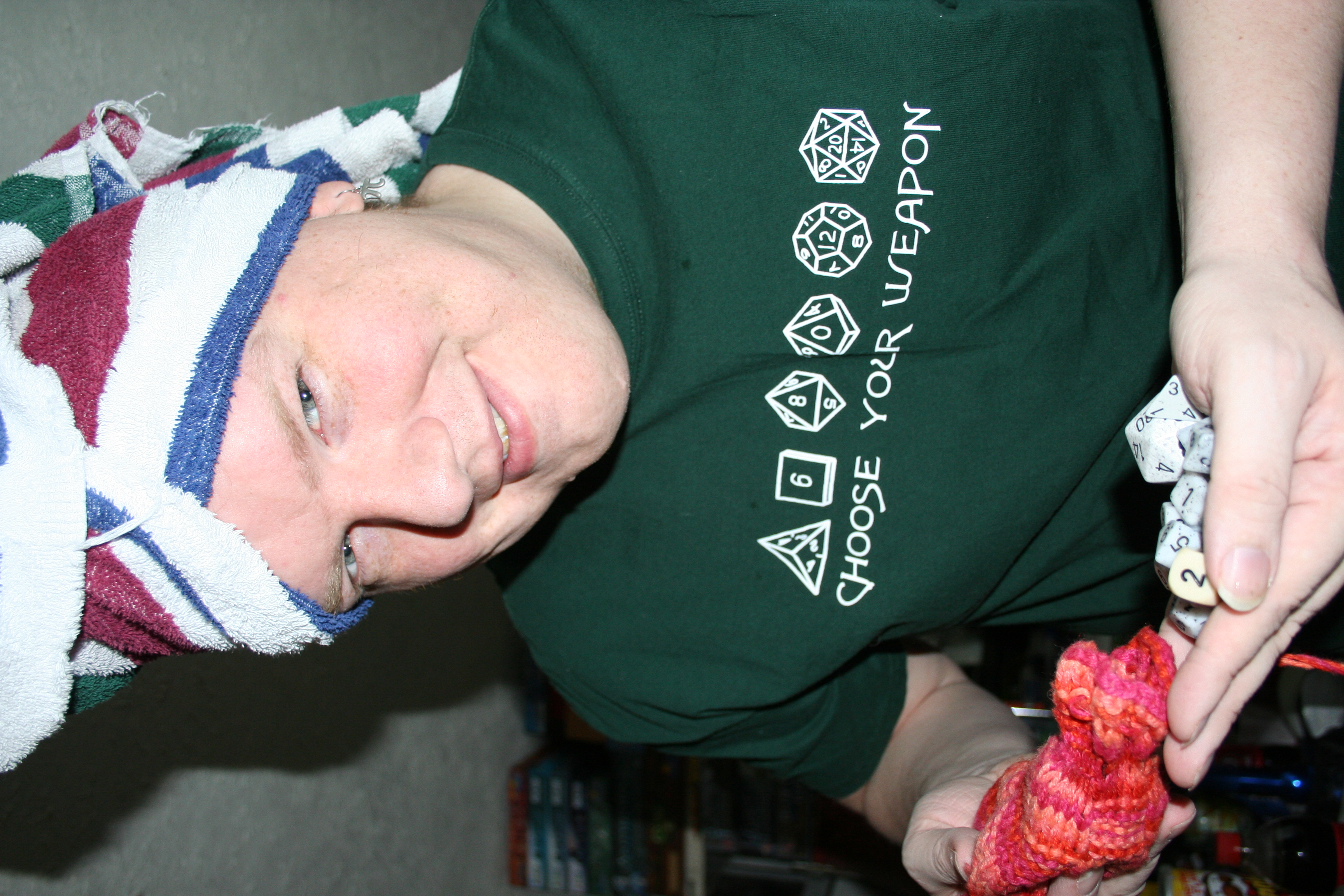 Like that cool dice bag? Cori crocheted it. She made it fFrom nothing!!