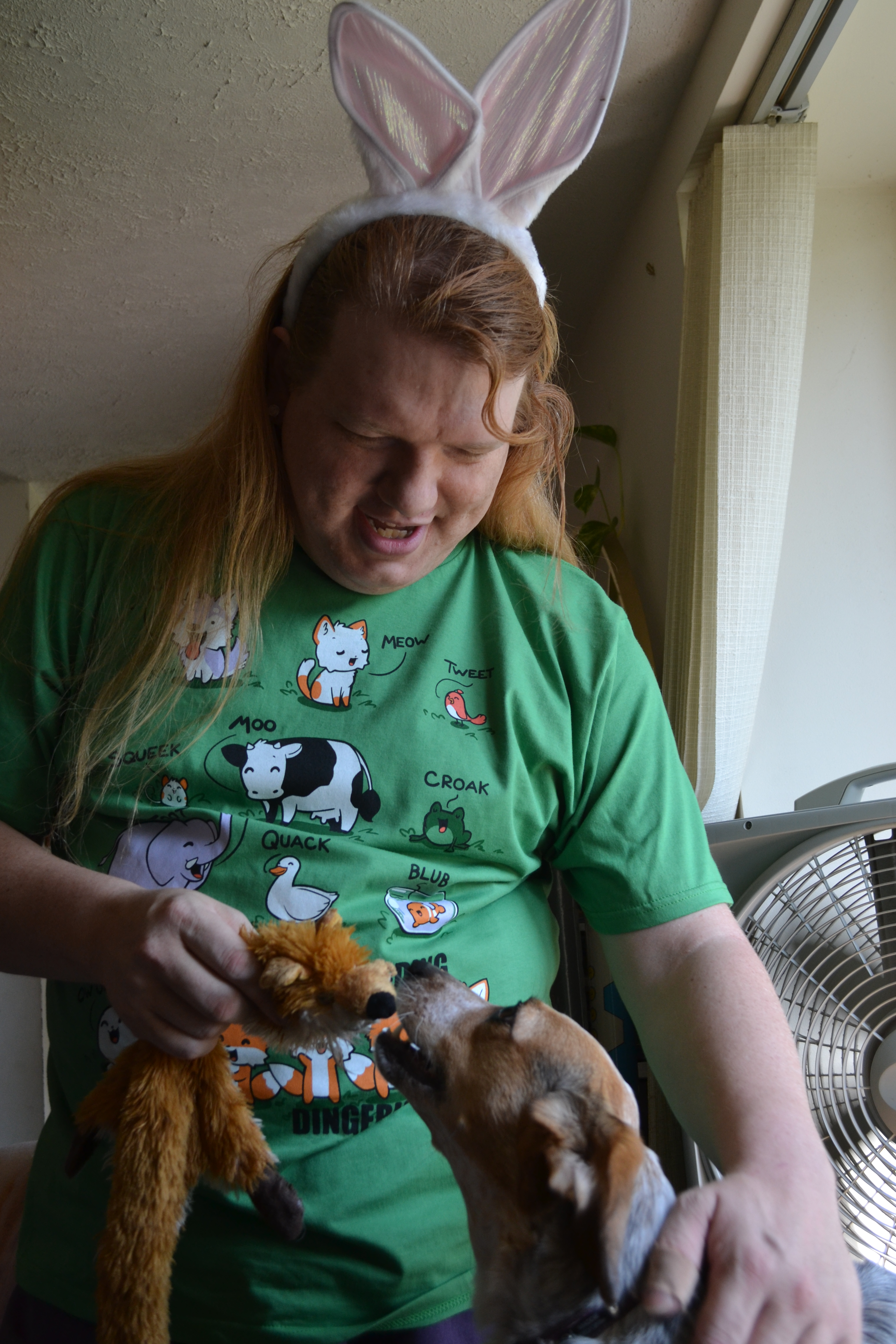 Maddie and Gus have one of those toys with no stuffing that is a fox. It used to squeak, until Maddie ripped them out. She really likes to get to the guts of her toys.