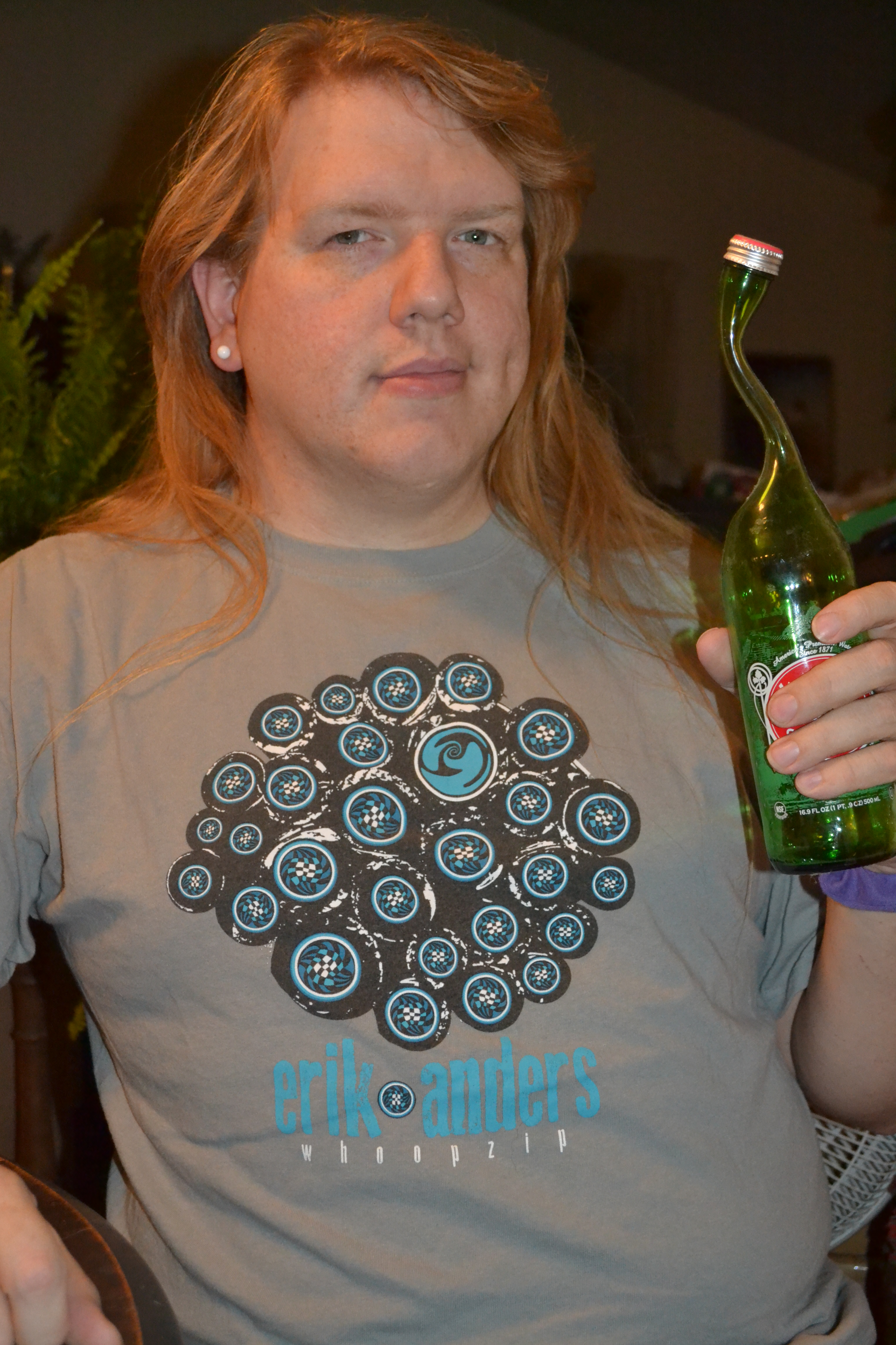 This shirt is from the glass artist Erik Anders made by Whoopzip featuring millefiori.