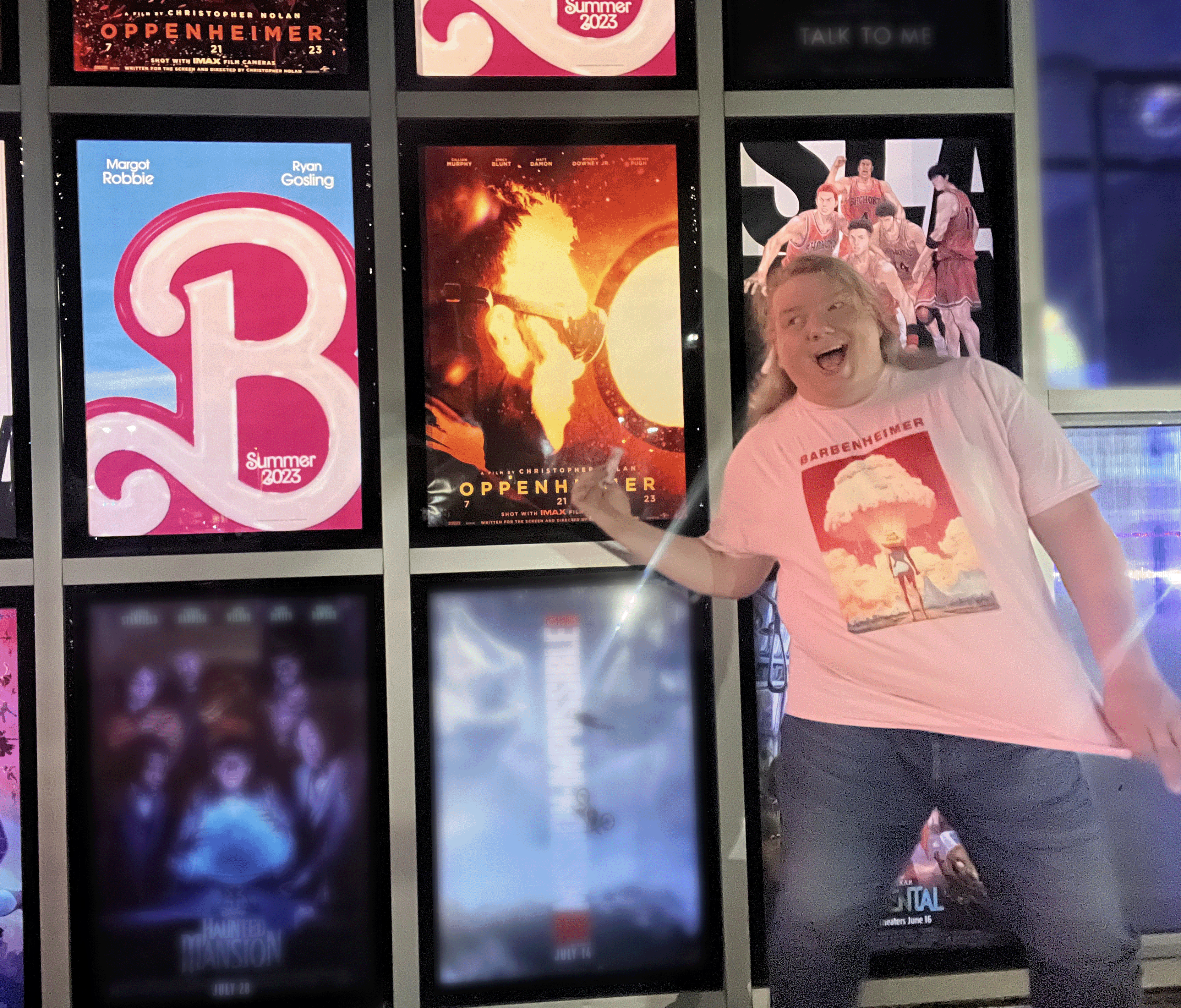 Barbenheimer Madness has arrived!!! BARBIE! OPPENHEIMER!! Two movies! Six hours of Cinema! One incredible t-shirt!! I was able to see one after another, with a ton of popcorn and a couple hotdogs to keep me going.